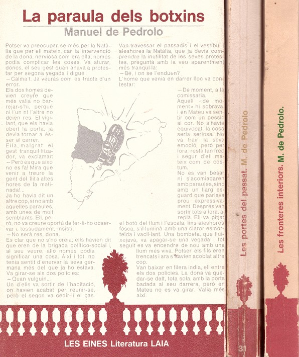 Pack 3 vol. de la tetralogia "La Terra Prohibida": 1. Les portes del passat: 1ª Ed. 1977. Col. Les Eines, 31. 337 pp. Lomo algo estriado, cubiertas rozada.; 2. La paraula dels botxins: 1ª Ed. 1977. Col. Les Eines, 32. 262 pp.; 3. Les fronteres interiors: 1ª Ed. 1978. Col. Les Eines, 40. 311 pp. Lomo algo estriado. Ref. C16B5.