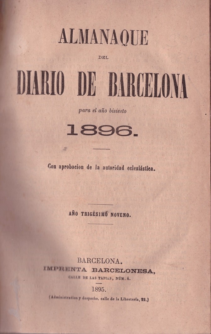 • ALMANAQUE DEL DIARIO DE BARCELONA. 1896-1900