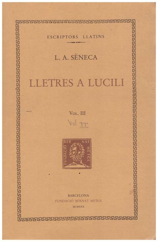 Sèneca, L A Fundació Bernat Metge Ref. 9999900005059 Ver otros productos de la misma colección Ver otros productos del mismo autor