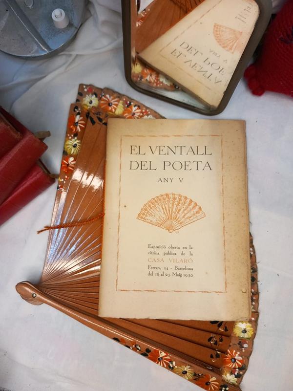 Exposició oberta en la vitirina pública de la Casa Vilaró. Reproducció de les poesies autògrafes amb què els poetes de catalunya han enjoiat els ventalls. Cosida. 10 pp. Catalán.