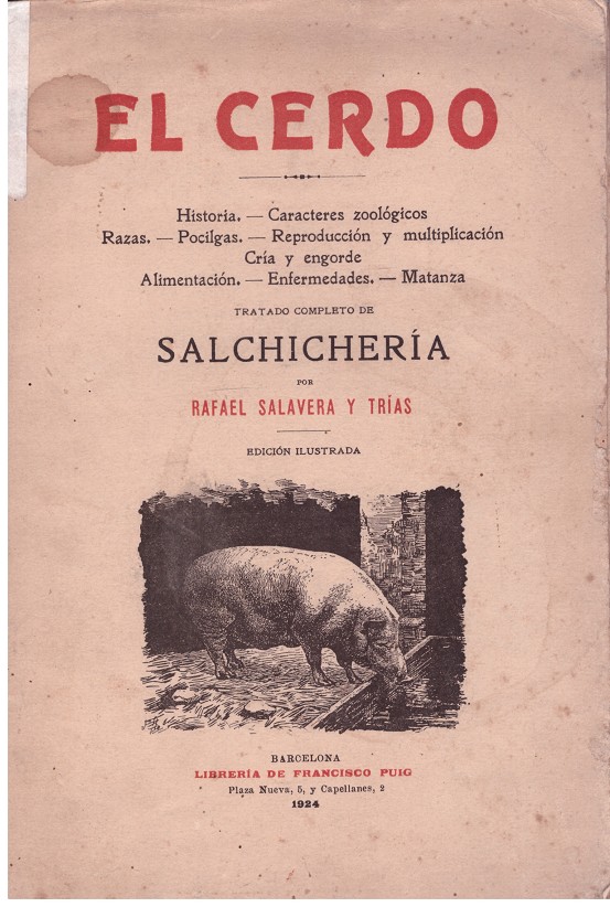 Historia. Caracteres zoológicos. Razas. Pocílgas. reproducción y multiplicación. Cría y engorde. Alimentación. Enfermedades. Matanza. Barcelona. 1ª edición. 1924. 294 pp. 23 cm. Edición ilustrada. Rústica, envejecida. Lomo estriado. Con manchas. 0