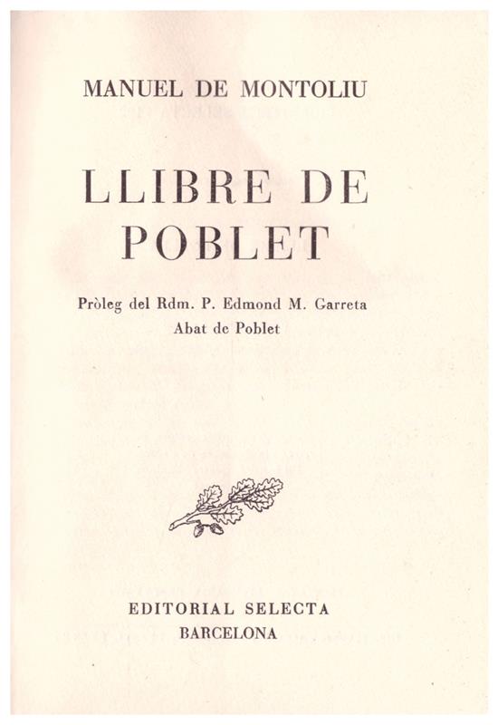 Pròleg del Rdm. P. Edmond M. Garreta, Abat de Poblet. Biblioteca Selecta, nº 182. 241 pp. Láminas con ilust. b/n. Algunas páginas rayadas con bolígrafo.