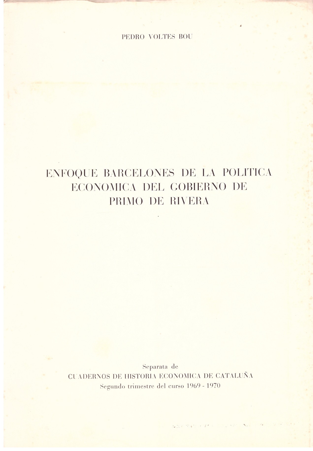 • ENFOQUE BARCELONES DE LA POLITICA ECONOMICA DEL GOBIERNO DE PRIMO DE RIVERA
