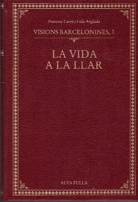 Los cuatro volumenes de "Visions Barcelonines" editadas por la editorial Alta Fullla. Escrita por Francesc Curet y con ilustraciones de Lola Anglada. Cada volumen se centra en una tematica, y estas son: La Vida a la llar; Botigues, obradors i cases de menjar i beure; La vida humanitaria,; i per acabar Costums, festes i solemnitats. Cada edición esta acompanyada con ilustraciones a color y b/n.. Encuadernación editorla estampada.