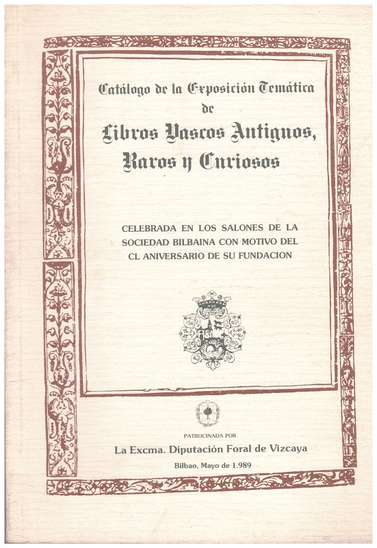 Bilbao. 1989. 127 pp. Ilustraciones de las portadas de los libros expuestos. Rústica. 4º. Descripciones detalladas de los ejemplares del catálogo.