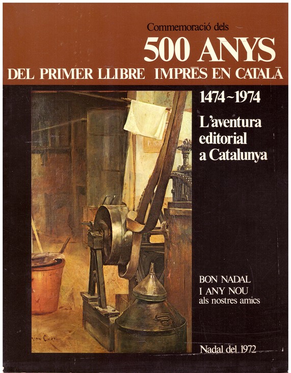 1474 - 1974: L'aventura editorial a Catalunya. Ilustraciones y grabados b/n y color. catalán. 105 pp. Nadal del 1972.