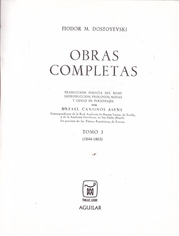 Dostoyevski, Fiodor Editorial Aguilar Ref. 9999900011180 Ver otros productos del mismo autor