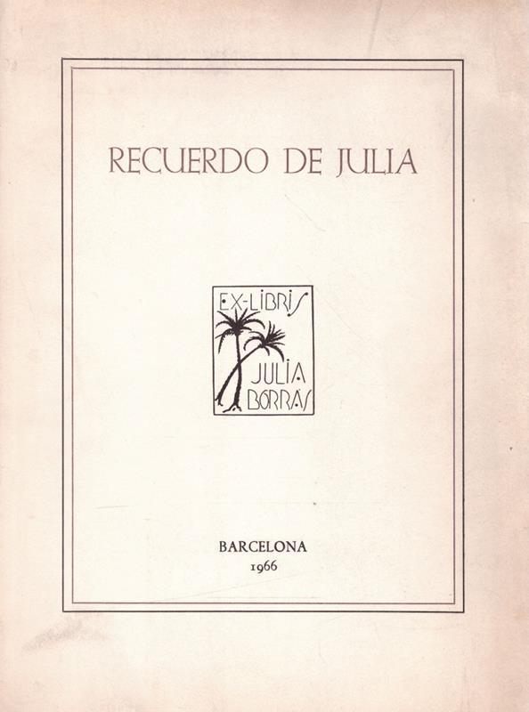 Exlibris de Julia Borras. Barcelona, 1966. 93 pp. Papel barbado. Ejemplar nº 100 de 125 con Papel Guarro. Rústica.