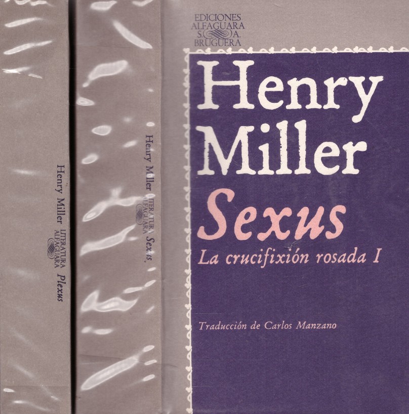 Obra en 2 vol. Traducción de Carlos Manzano. Colección Literatura Alfaguara, núm. 32 y 50. Aprox. 679 pp Rústica, contraportada con restos de óxido de cinta adesiva.Vol 1 Sexus La crucifixión rosada I (1960) - Vol II Plexus La crucifixión rosada II (1963)