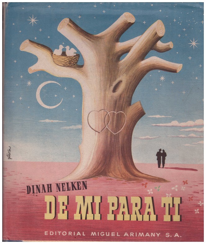 Una novela en cartas con una historia y su moraleja para cuantos están enamorados y para cuantos desean estarlo. Traducción de Ricardo Boadella. Barcelona. 2a edición. 1950. Sin paginar. 22 cm. Dibujos en color y recortes de papel, tipo collage. Enc. editorial con sobrecubierta, ilustrada por Pitarch.
