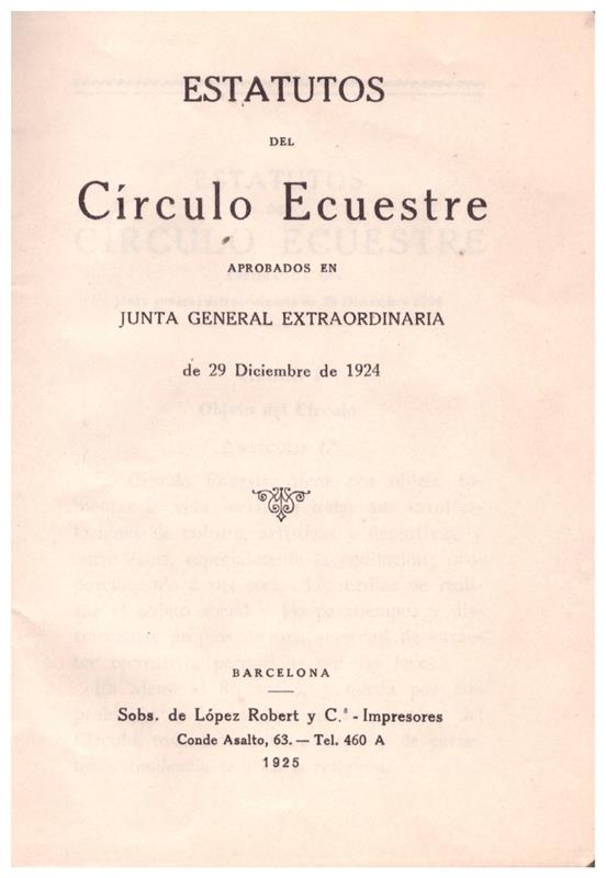 • ESTATUTOS EL CÍRCULO ECUESTRE, Aprobados en Junta General Extraordinaria, de 29 Diciembre de 1924