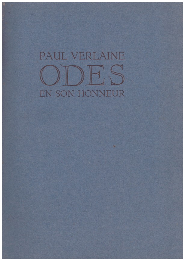 Nos encontramos con una gran joya. La edición de "Odes en son honneur" del poeta francés Paul Verlaine, perteneciente al movimiento simbolista, fue impreso como modelo del famoso tipógrafo y impresor Charles Nypels, (1895-1952) famoso por su diseño clásico monumental de gran calidad. Se desvió de las convenciones tipográficas existentes, utilizando así la tipografía de Sjoerd Hendrik de Roos, tipografo holandés.