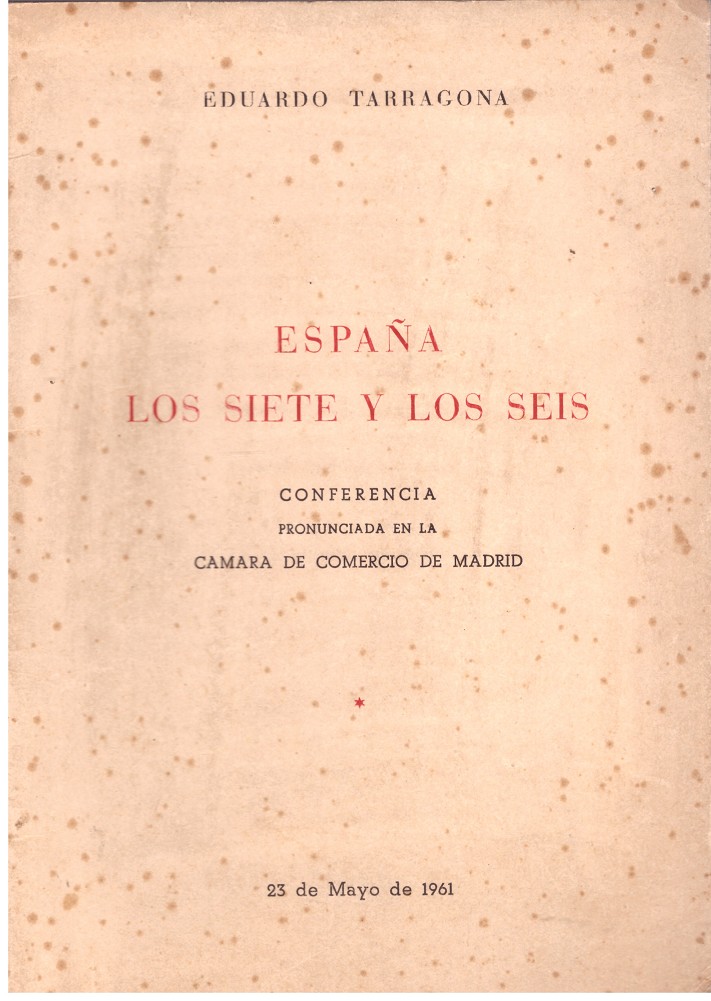 23 pp. Puntos de óxido en la cubierta. Conferencia pronunciada en la Camara de Comercio de Madrid.