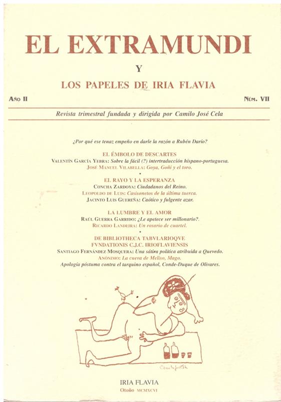 • EL EXTRAMUNDI Y LOS PAPELES DE IRIA FLAVIA. Año II. Núm. VII. Revista trimestral fundada y dirigida por Camilo José Cela.