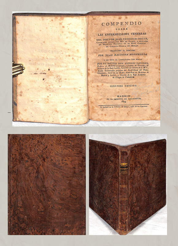 Traducido al toscano por Juan Bautista Monteggia, y de este al castellano con notas por el Doctor Antonio Lavedán. Impreso por Imp. Villalpando. Madrid. 2ª ed. 1804. Enc. pasta española envejecida. Firma y anotaciones del antiguo prop en las guardas. Hojas oscurecidas. Puntos de óxido. 21 cm.