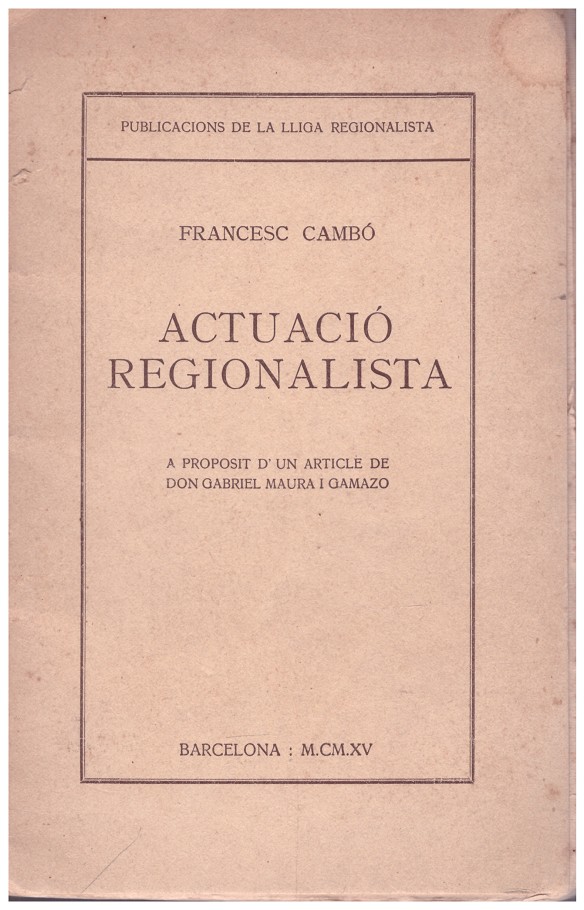 Cambó, Francesc Ed. Publicacions de la "Lliga Regionalista". Ref. 9999900119039 Ver otros productos del mismo autor