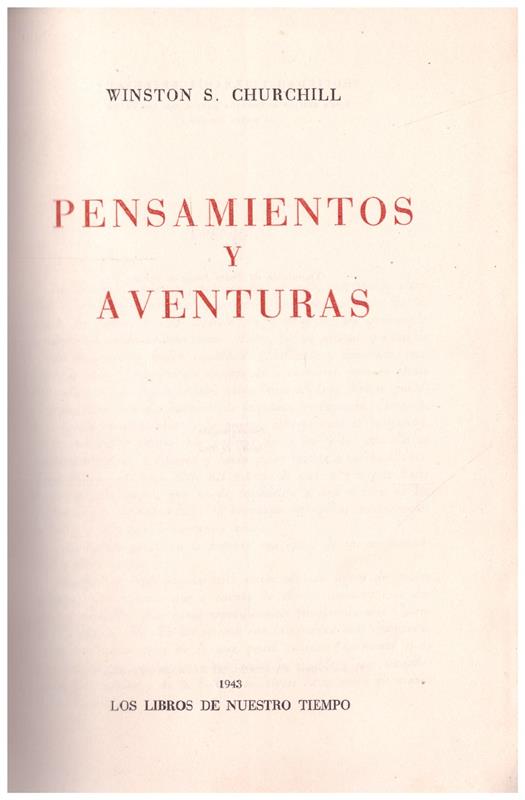 1ª ed. 1943. Barcelona. Trad. P. Fraga de Porto. 319 pp. 22 cms. Ilustr. b/n dentro del texto. Enc. tela editorial. Firma del ant. prop. en portadilla y puntos de óxido. Pensamientos y filosofía política junto con anécdotas y aficiones de Winston S. Churchill escritas por él mismo.