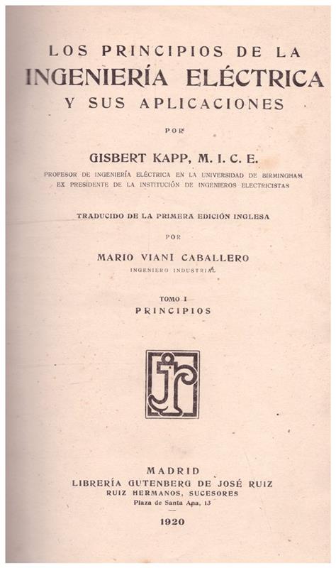2 tomos.- Principios. Aplicaciones. Madrid. Librería Gutenberg de José Ruiz. 1920, 1924. 448 pp. + 518 pp. . Pequeñas ilustraciones y ejemplos intercalados dentro del texto. Trad. Mario Viani Caballero. Re- encuadernado en lomo y puntas en tela.