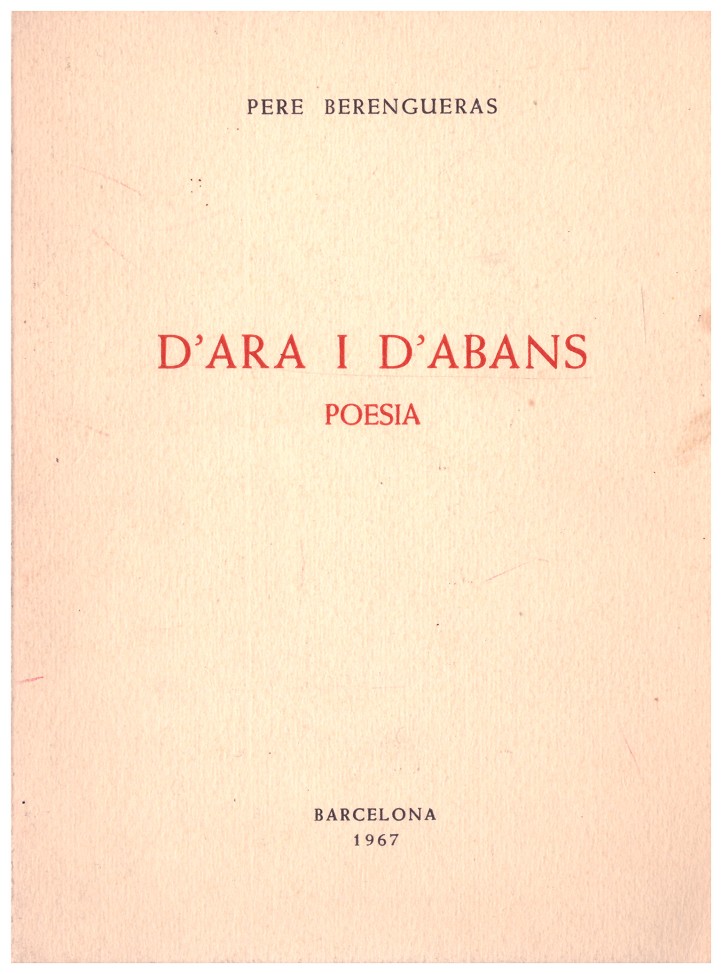 Introducción de Josep Maria Capdevila. Imprimido en Gráficas Marina. Barcelona. 1967. 87 pp. 18 cms. Enc. rústica. Lomo un poco despegado de la encuadernación. Firma del autor en la portada. Catalán. Selección de poemas de todos los tiempos de Pere Berengueras.