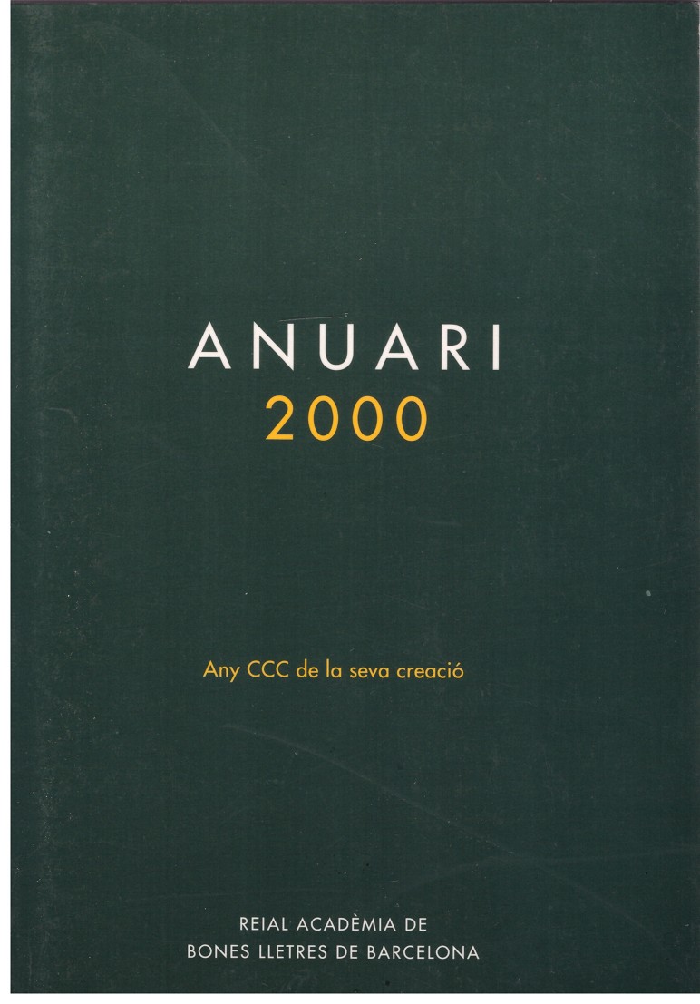 Ed. Reial Academia de Bones Lletres de Barcelona. En catalán. Any CCC de la seva creació. 98 pp.