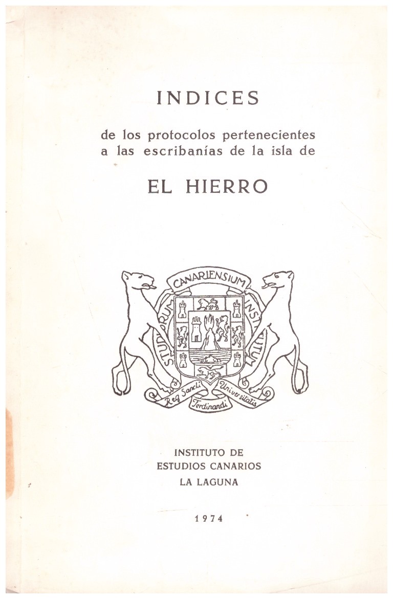 • Indices De Los Protocolos Pertenecientes A Las Escribanias De La Isla De El Hierro