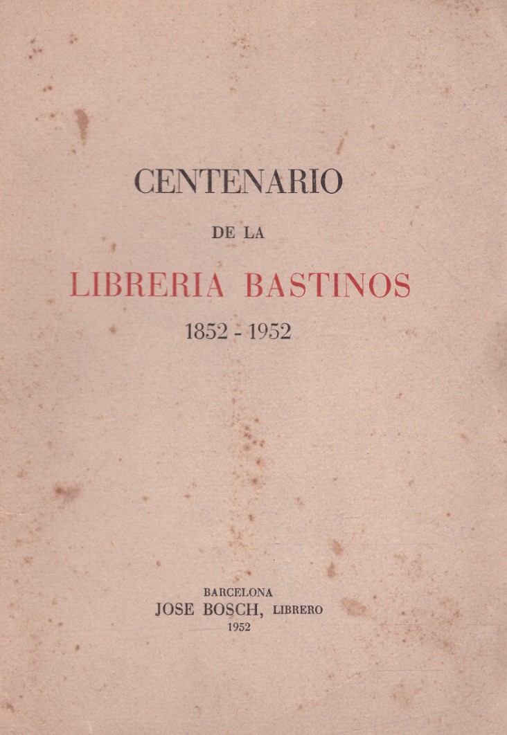 • CENTENARIO DE LA LIBRERIA BASTINOS (1852 - 1952)