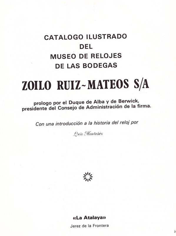 • CATALOGO ILUSTRADO DEL MUSEO DE RELOJES DE LAS BODEGAS ZOILO RUIZ- MATEOS S/A