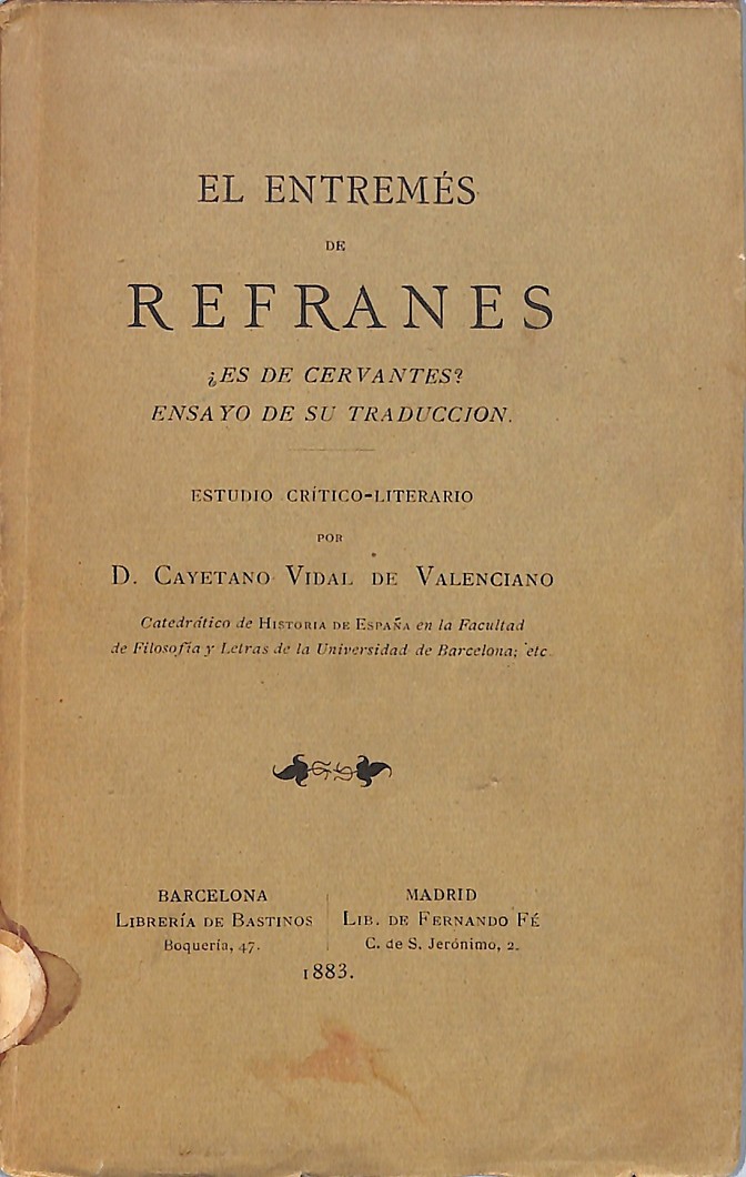 • EL ENTREMÉS DE REFRANES. ¿Es de Cervantes? Ensayo de su traducción