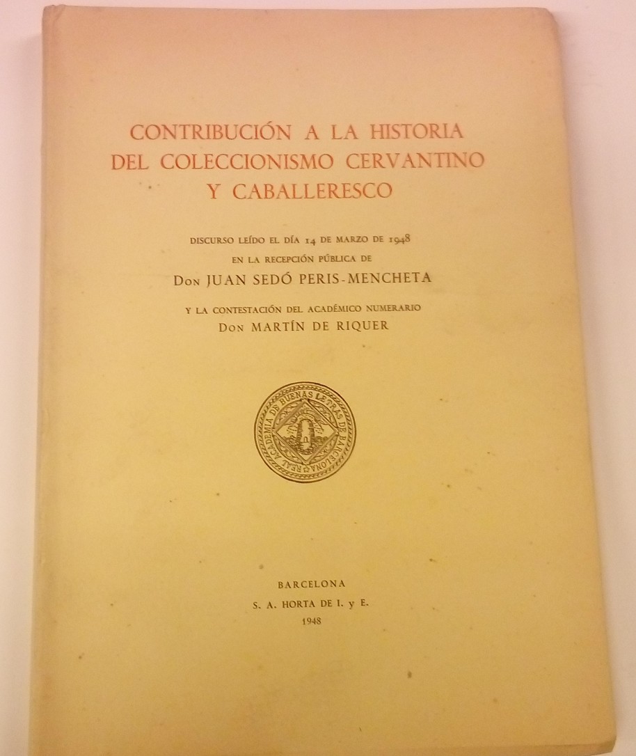 Discurso leído el día 14 de Marzo de 1948 en la Recepción pública de Dn Juan Sedó Peris-Mencheta y la contestación del Académico numerario Dn Martín de Riquer. Impreso Escuela de la Casa Provincial de Caridad. 1948. Barcelona. 155 pp. Rústica.