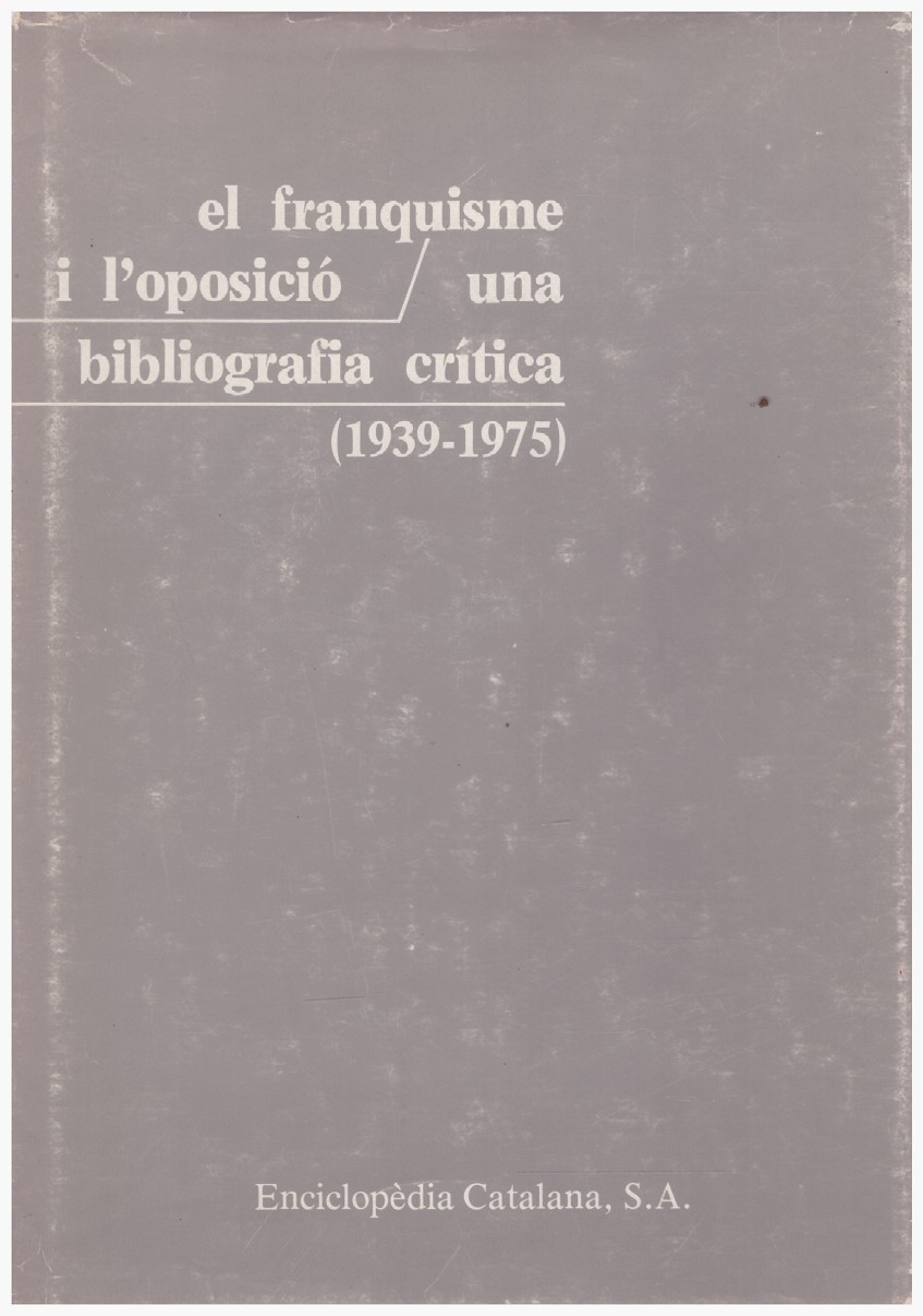 1ª ed. 1981. Bajo la dirección de EMili Giralt i Raventós. Col. Els Manuals de la Gran Enciclopèdia Catalana. Barcelona. 885 pp. 22 cms. Enc. editorial con sobrecubierta, desgastada. Papel amarillento. Catalán. Contiene índice. Amplia bibliografía de publicaciones nacionales relacionadas con el franquismo y su oposición durante la dictaura.