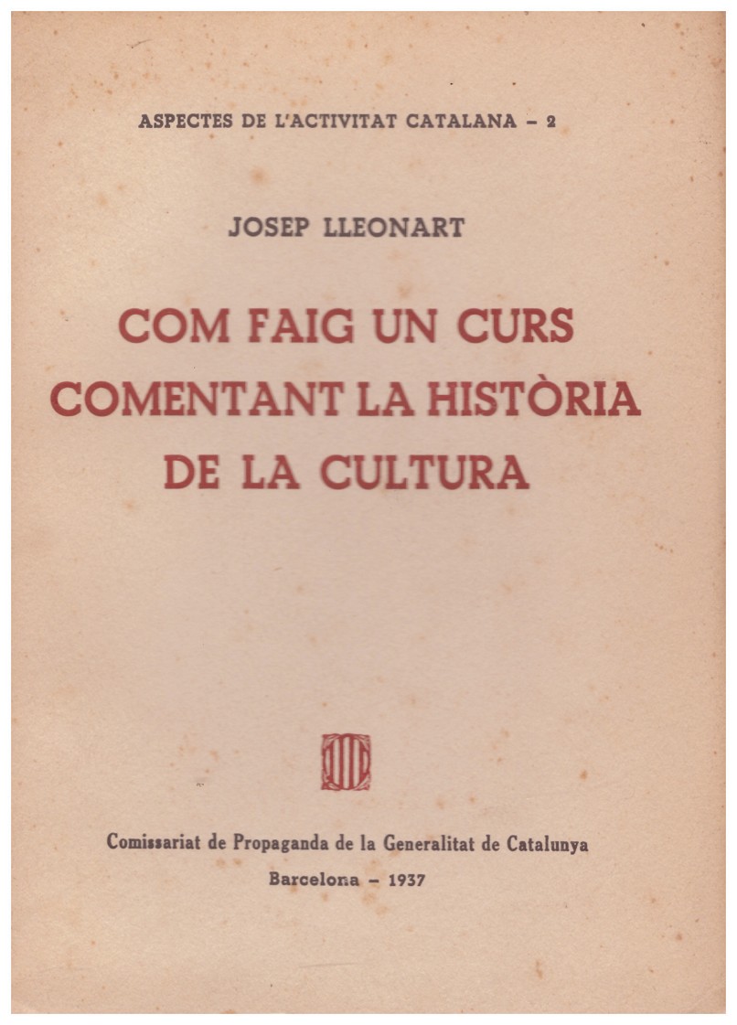Comissariat de propaganda de la Generalitat de Catalunya. Barcelona. 1937.Col. Aspectes de l' Activitat Catalana, nº 2. 45 pp. 18 cm. Intonoso. Cubierta con puntos de oxido. En catalán. Ref. C11-S