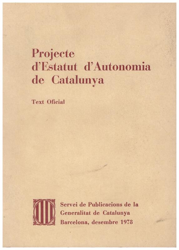 • PROJECTE D'ESTATUT D'AUTONOMIA DE CATALUNYA. Text Oficial