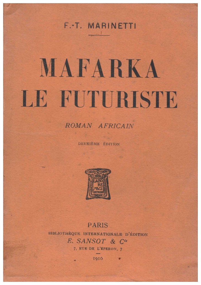 Mafarka es un relato de acción demoledora, exhibicionista y amoral que exalta la velocidad, la temeridad, el peligro y la violencia: Mafarka-l-bar arrebata a su tío Bubassa la corona de Tel-al-kebir ante el inminente ataque del rey negro Brafan. Mafarka derrota a Brafan valiéndose de la astucia, pero en los combates pierde a su hermano Magamal, mordido por un perro rabioso. abandona entonces el cetro de Tel-al-kebir y decide morir transfiriendo su espíritu a su hijo Gazurmah, una estatua alada de madera a la que da vida con un beso.