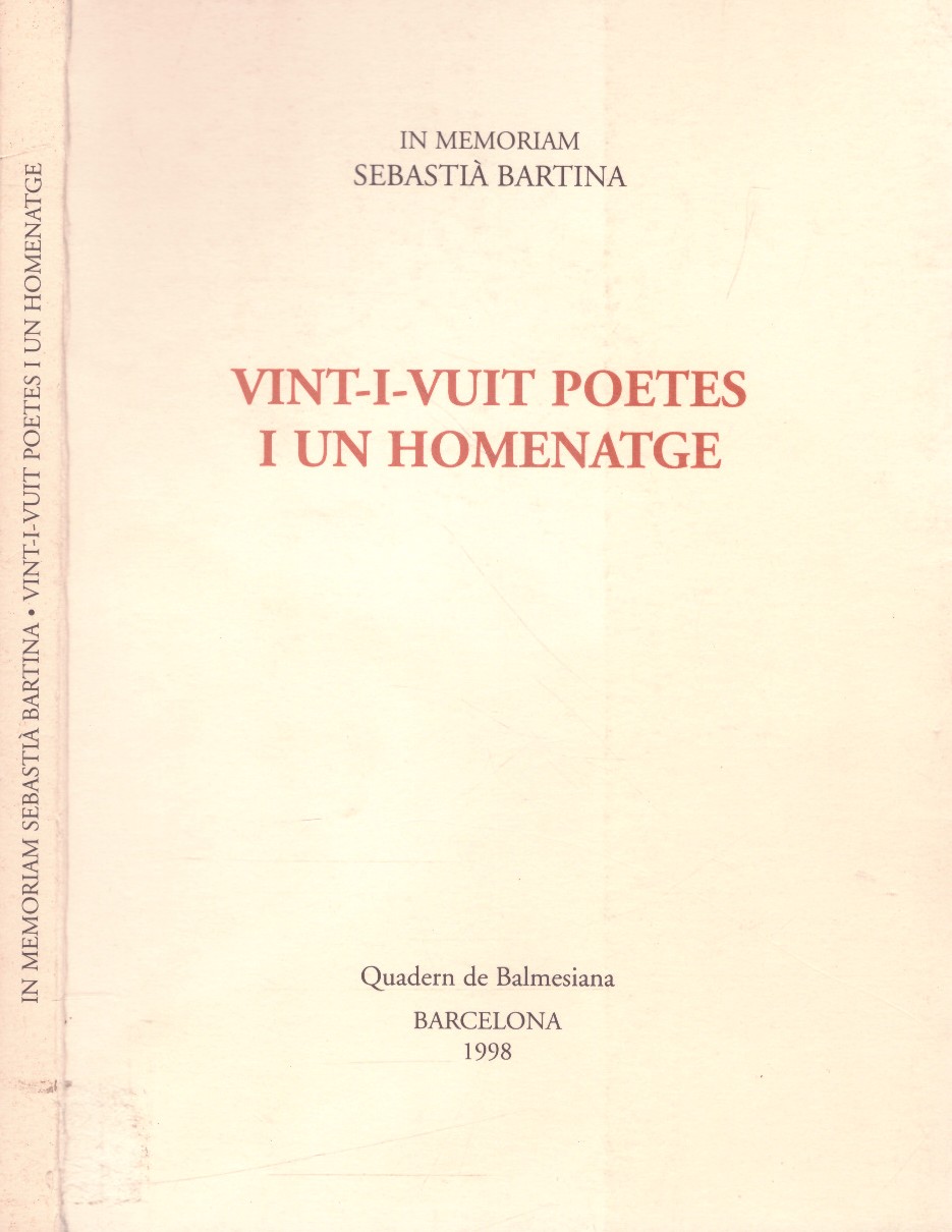 In memoriam Sebastià Bartina. Quadern de Balmesiana. 1998. Barcelona. 146 pp. En catalán. Rústica.