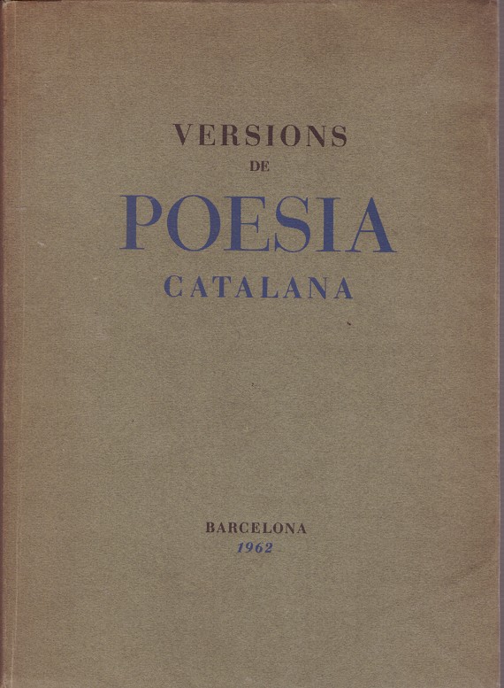 Esta edición de versiones de poesía catalana M.Manent; J.Maragall: J.Palau Fabre; P.Quart(J.Oliver)J.S. Pons; C. Riba; Rosselló-Porcel;; J.Alcover; Cl.Arderiu; A.Bartra; J.Carner; S.Espriu; J.V.Foix; J.Fuster; T.Garcés; Guerau de Liost; López- Picó; J.M. Sagarra; Salvat-Papasseit; J. Teixidor; Màrius torres; Joan Vinoli. Ha sido editado por motivo del XVI Congreso de la Unión Internacional de Editores reunido en Barcelona del 6 al 12 d eMayo de 1962. La edición ha sido preparada por F. P. Verrié con la colaboración de Albert Manent y de los profesores Juan triadú y Joaquim Molas..