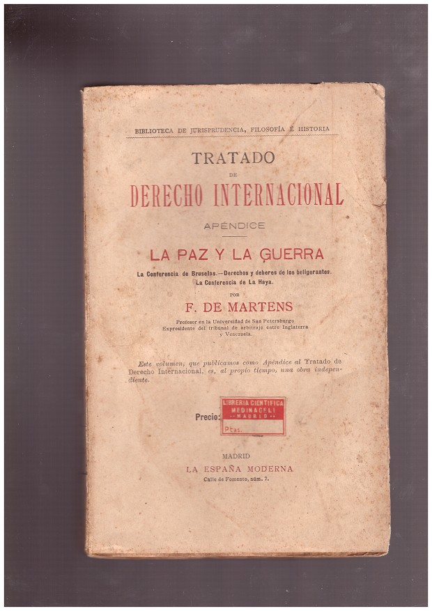 • LA PAZ Y LA GUERRA. Apendice del tratado de derecho internacional.