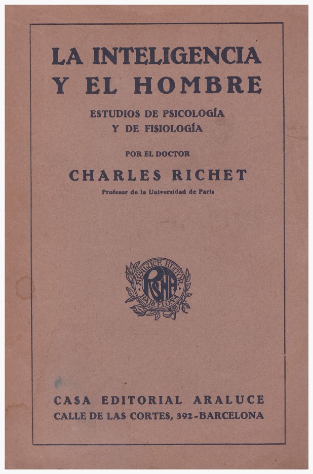 "La inteligencia y el hombre" Estudios de psicología y de fisiología por el Doctor Charles Richet, profesor de la Universidad de París. Sin data.