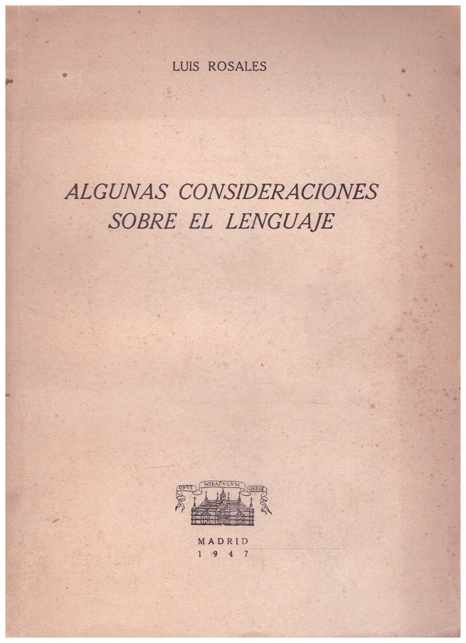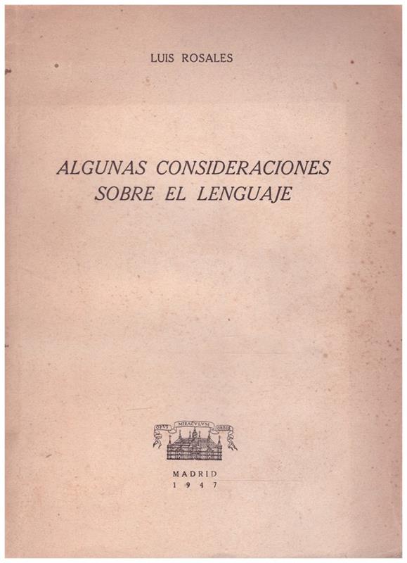 ALGUNAS CONSIDERACIONES SOBRE EL LENGUAJE. Apuntes para una poética. Madrid, 1947. Cubierta rozada, con puntos de óxido.