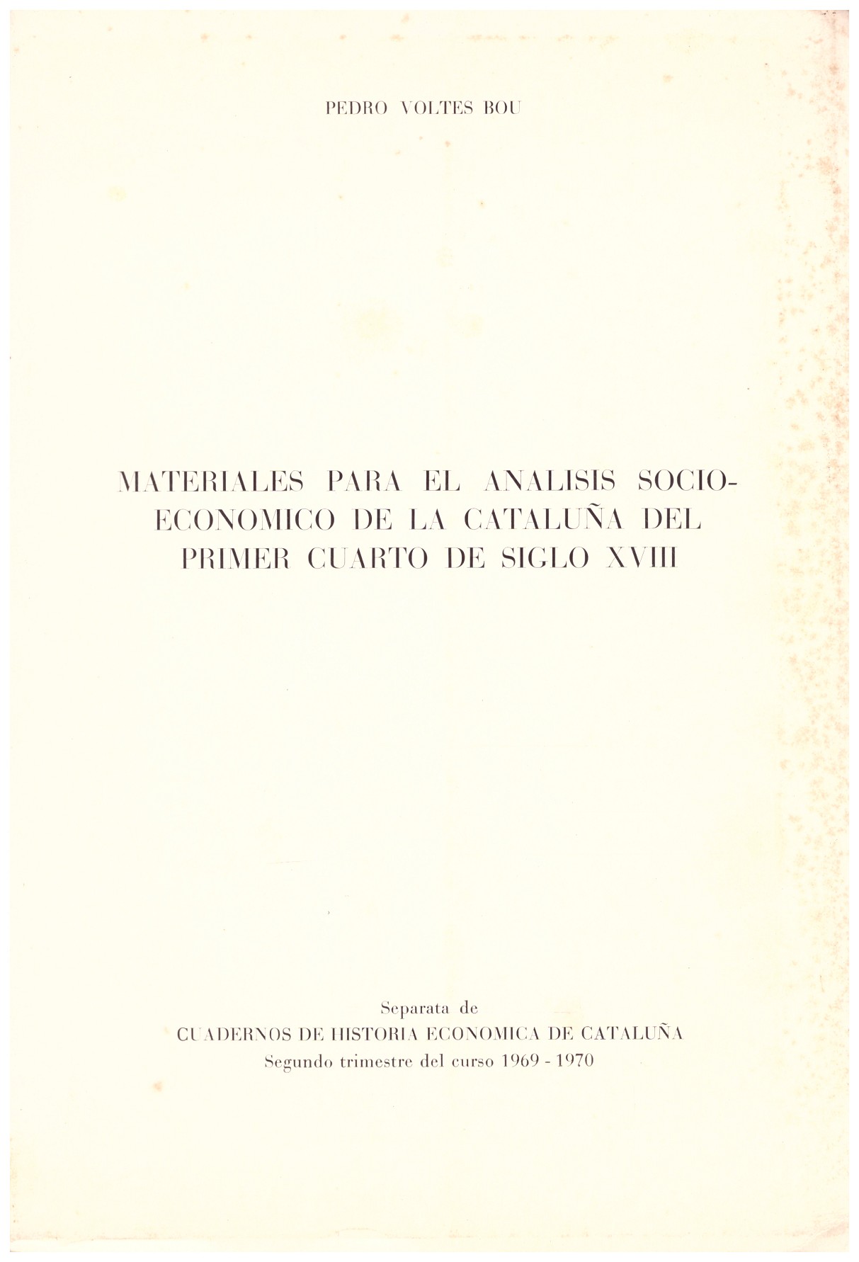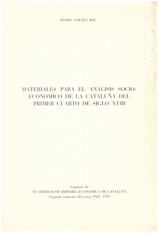 Separata de Cuardenos de Historia Economica de Cataluña. Segundo trimestre del curso 1969-1970. La cubierta ligeramente algo rozada.
