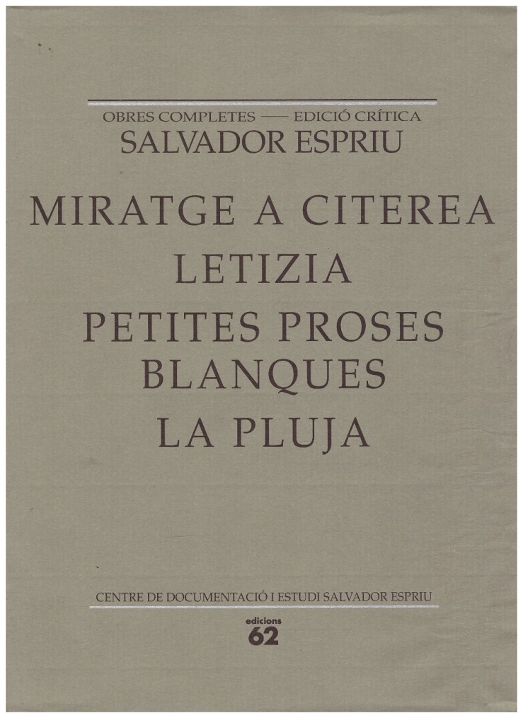 Espriu, Salvador Edicions 62 Ref. 9999900218244 Ver otros productos del mismo autor Dimensiones: 225 x 165 x 30 cm Peso: 700 gr