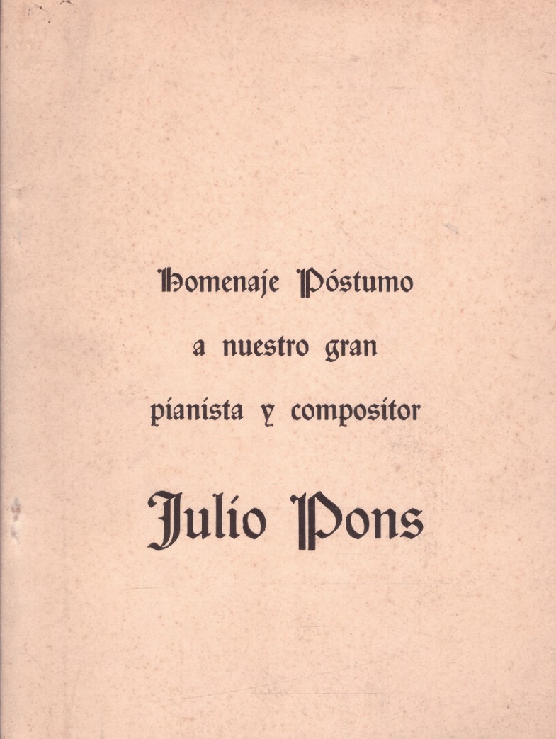 73 pp. Homenaje al pianista Julio Pons. Ilustraciones a b/n. Plano anterior y posterior amarillo y con manchas de oxido.