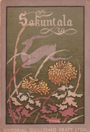 Edicion de 1955 ilustrada por Marta Elsa Mazzarella, por la Editorial Guillermo Kraft Limitada de la obra teatral Sakuntala de Kalidasa.