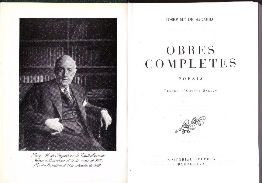 Segunda edición de 1981 de Poesia de las "Obras Completas" de Josep M. de Sagarra. Incluye un indice alfabetico por los primeros versos.