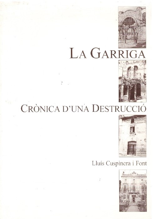 Crònica del canvi d'imatge de l'espai garriguenc i els fets entorn de la protecció del patrimoni arquitectònic urbà i rural des de l'any 1881. De Lluís Cuspinera i Font.