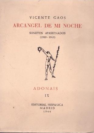 Primera edición de "Arcangel de mi noche" consta de 425 ejemplares en paperl de edición, y cien en papel Offset especial, de los cuales setenta y cinco numerados del 1 al 75, reservados a los suscriptores de lujo de Adonais, y veinticinco numerados del I al XXV, para los suscriptores de honor.