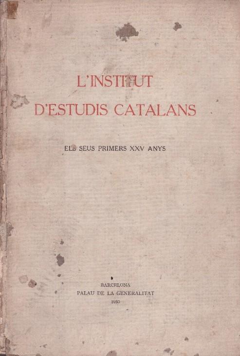 Edición por el Palau de la Generalitat d los primeros anños de "L'institut d'estudis catalans". Incluye fotografias en b/n de 1935.