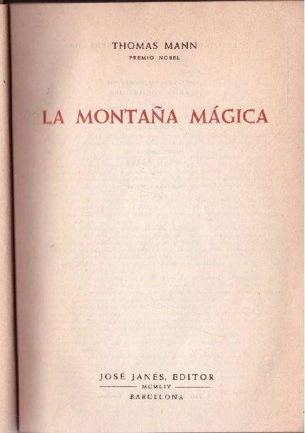 Octava edición de "La Montaña mágica" en castellano de Thomas Mann por José Janés Editor de 1954. Conservada en buen estado.