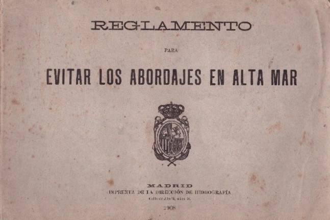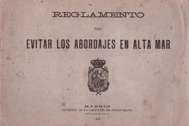 Edición de 1908 por la Ciudad de Madrid de la Imprenta de la Dirección de Hidrografía de "Reglamento para Evitar los abordajes en alta mar". Bien conservado