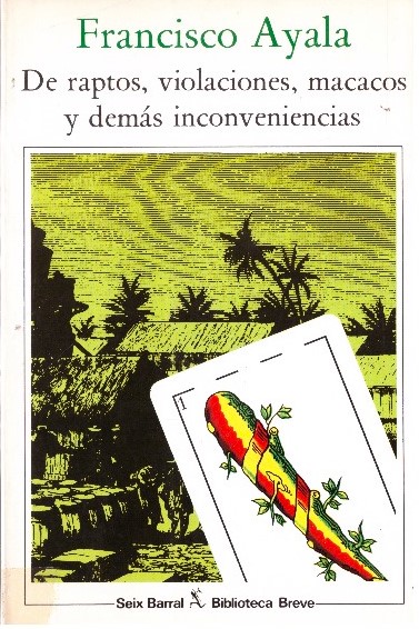 Primera edición de la novela de Francisco Ayala "De raptos, violaciones, macacos y demás incoveniencias" por la editorial Seix Barral.