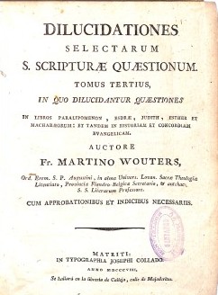 Escrito por el fraile Martino Wouters, agustino, lector en Sagrada Teología y reconocido exégeta, la obra contiene también aprobaciones eclesiásticas e índices sistemáticos.